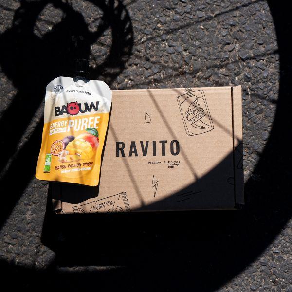 La Box RAVITO, en partenariat avec Pédaleur, revient avec une sélection de 12 produits de nutrition (à consommer avant, pendant et après l'effort) spécialement adaptée aux exigences des sportifs d’endurance, coureurs comme cyclistes.